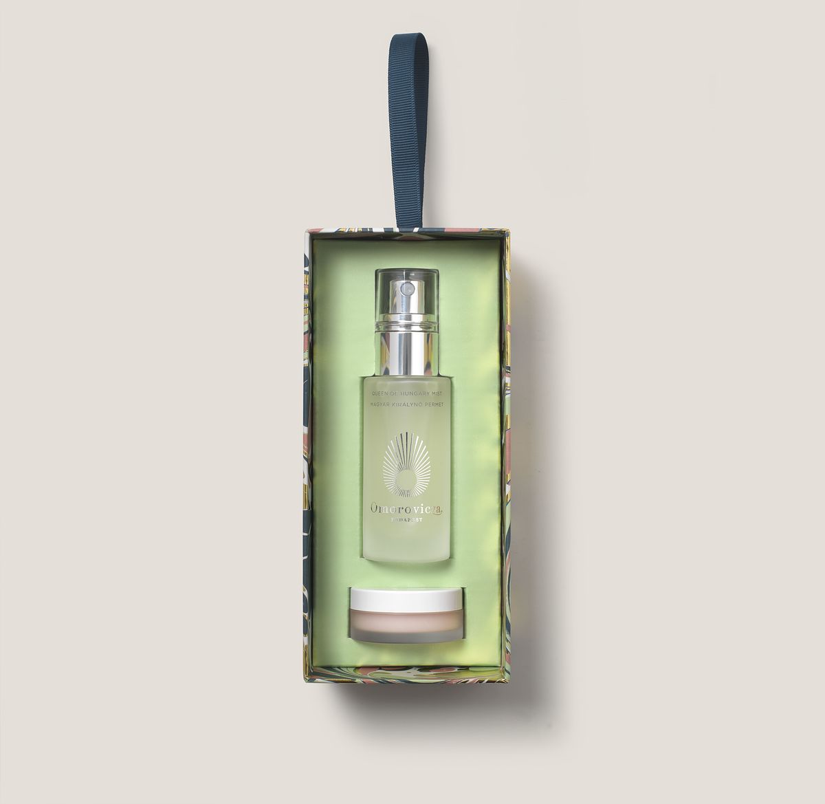 以匈牙利療癒溫泉水為基底,與橙花、玫瑰、鼠尾草純露,結合專利「礦泉護膚導入科技TM」,讓溫泉中富含的天然礦物質階段式有效地滲入肌底,帶來皇室級輕奢的醒膚體驗。瓶身擷取成分中的橙花與玫瑰盛開的形貌,使用起來愉悅可人。