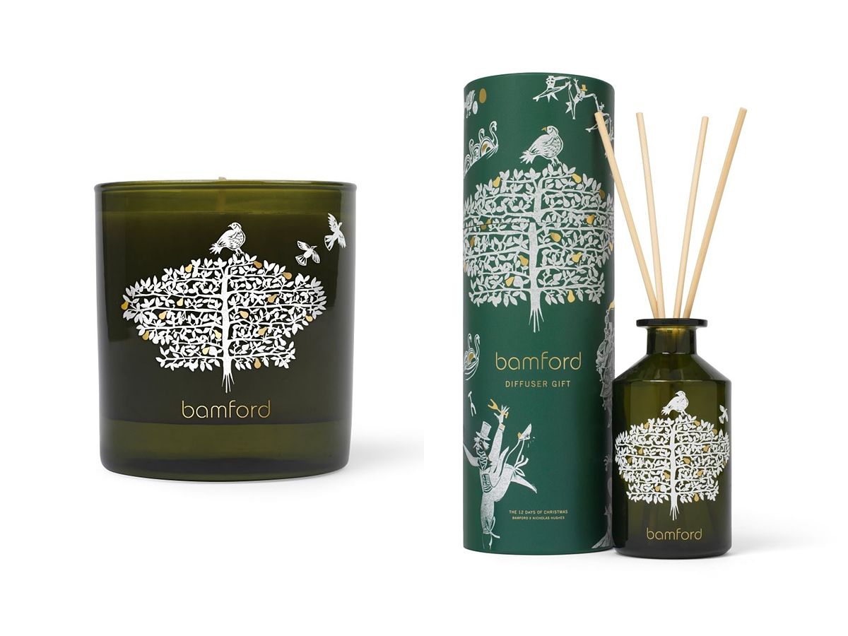Carole Bamford女爵創立的bamford專注於融合大自然,完美詮釋創辦人的品味與生活美學,帶來給精緻、純淨、可真正滋養心靈與肌膚的創作。2022年聖誕系列,bamford 延請了英國藝術家Nicholas Hughes透過演繹詩歌 - 「聖誕節的十二天」創作了栩栩如生的動人插畫。