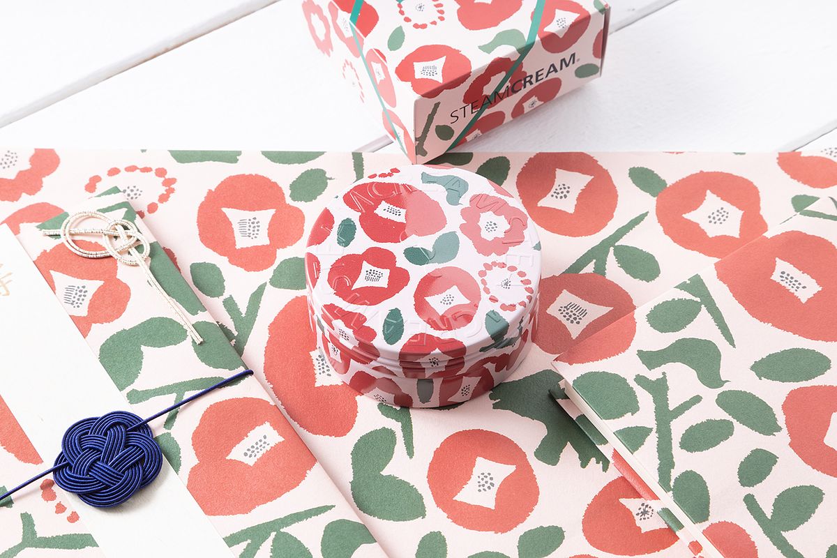 在福岡六本松的包裝紙專門店REGARO PAPIRO,販賣來自世界各地的進口包裝紙,還有日本國內設計師及店主自行設計的獨家圖案包裝紙,為了突顯品牌透過設計提升鋁罐收藏,進而實踐永續生活的理念,STEAMCREAM蒸汽乳霜首度與REGARO PAPIRO合作,一口氣推出六款聯名圖款選擇,包括鳥與花、閃耀寶石、小蝴蝶、圓形花、山茶花與鳥、個性點點,顏色明亮繽紛,為送禮者突顯個性與品味,其中「閃耀寶石」為了將複寫紙質感呈現在鋁罐上,經反覆測試才能將珍珠的光澤展現出來,而「圓形花」則是特別將原先包裝紙上土黃色的花莖改成金色,印在鋁罐上更具立體感,和風感滿點的「山茶花與鳥」在日本也相是高人氣,每天保養時就如同打開禮物,加上天然精油芳香,從視覺到嗅覺,充滿寵愛儀式感。