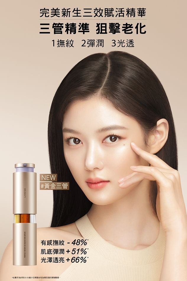 經歷30年研究,LANEIGE蘭芝提出在20+的時候,須立即讓肌膚蓄積滿滿抗老能量,是現代女孩保養的最大重點!品牌今年全新升級的完美新生三效賦活系列,專為33歲前肌膚立即斷老,33歲後肌膚延緩老化,並針對模糊的老化起點進行整頓,解決20歲暗沉,30歲失去彈力,40歲細紋的肌膚問題。當女孩們開始感受到肌膚乾燥頻率變得頻繁、用相同的化妝品上妝時卻出現卡粉浮粉、輪廓感覺不似過去完美而需要修容、整夜狂歡後肌膚不像以往快速恢復元氣,就是時候展開抗老超前部署,每日密集修護、精準打擊,改善整體肌膚體質!