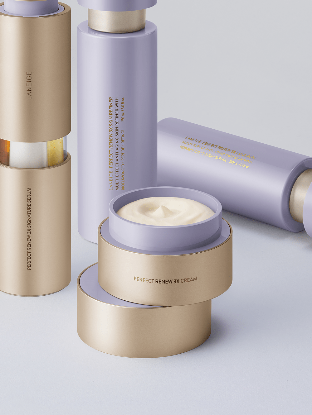 肌膚老化不是個別的肌膚問題、而是環環相扣的連鎖反應, LANEIGE蘭芝全新完美新生三效賦活全系列,以獨家「3X賦活科技」為此次升級抗老主軸: