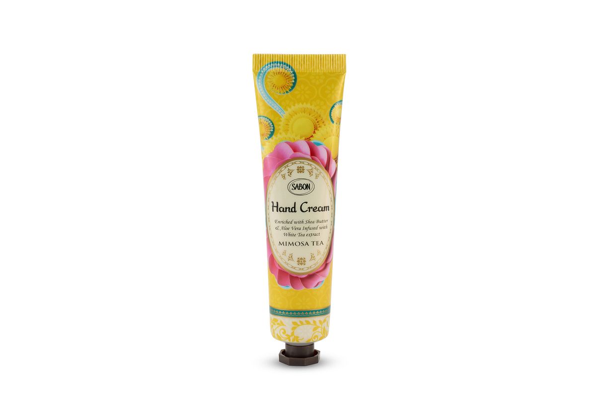 SABON 護手霜具有豐沛乳油木果油及蘆薈精華,可快速滋潤雙手,質地清爽且好吸收。茗金合歡散發出的明亮鮮黃的花香與小荳蔻、綠茶的愉悅香氣,令每個護手時刻都能與SABON沉浸在歡愉的茶語時光中。