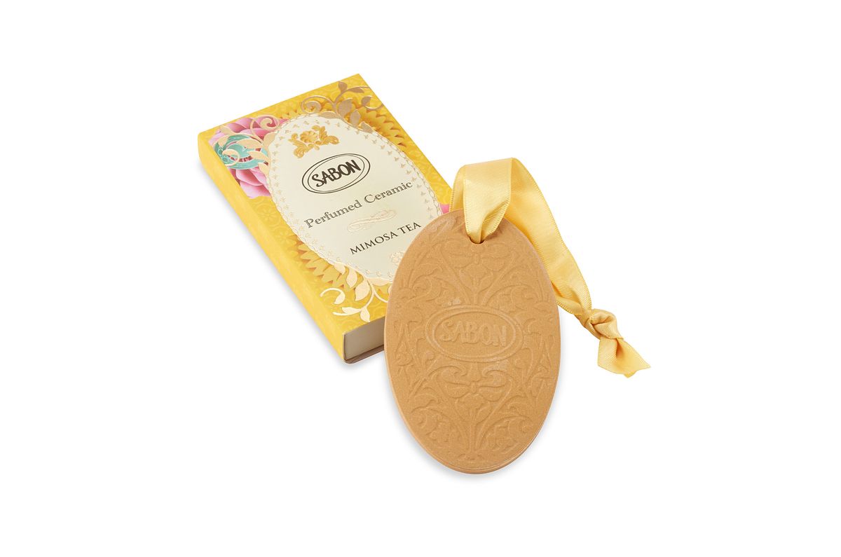 精緻優雅的陶瓷薰香石銘刻著SABON飾紋,浸潤滿金合歡絨花的活力,揉合溫暖的小荳蔻與清新的綠茶,使輕巧的薰香石散發出明亮開朗的香氣,可裝飾在空間中、懸掛在衣櫃,亦可置於抽屜或梳妝台等小空間,將冬日暖陽般溫暖活力的氣息盡留在身邊。