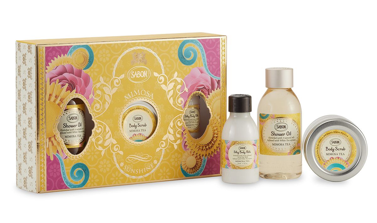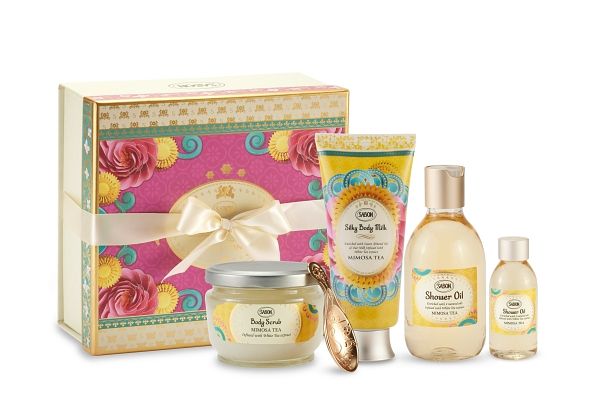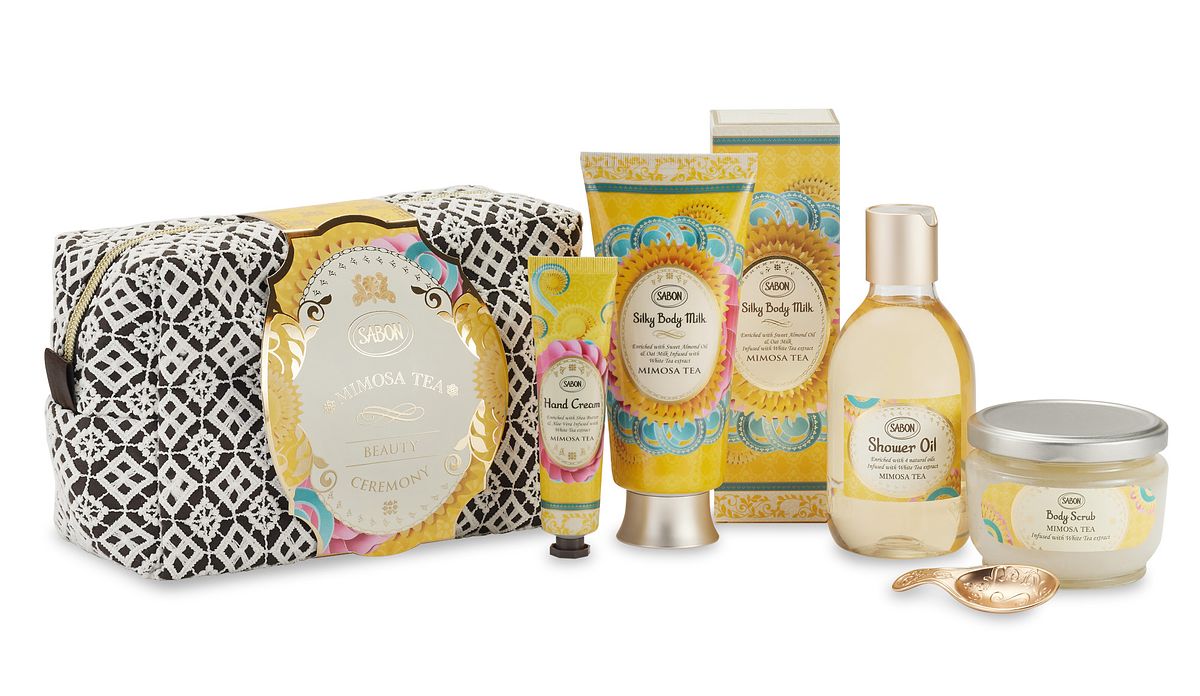 閃耀明亮的茗金合歡香氣,最適合開啟全新且美好的一年, 以茗金合歡暖心組為沐浴儀式做好最優雅的準備, 迎接擁抱全新的自己。 全套禮盒以華麗繡紋的化妝包盛裝茗金合歡明星三部曲正貨以及護手霜,並配有專屬訂製的 SABON小金茶匙。