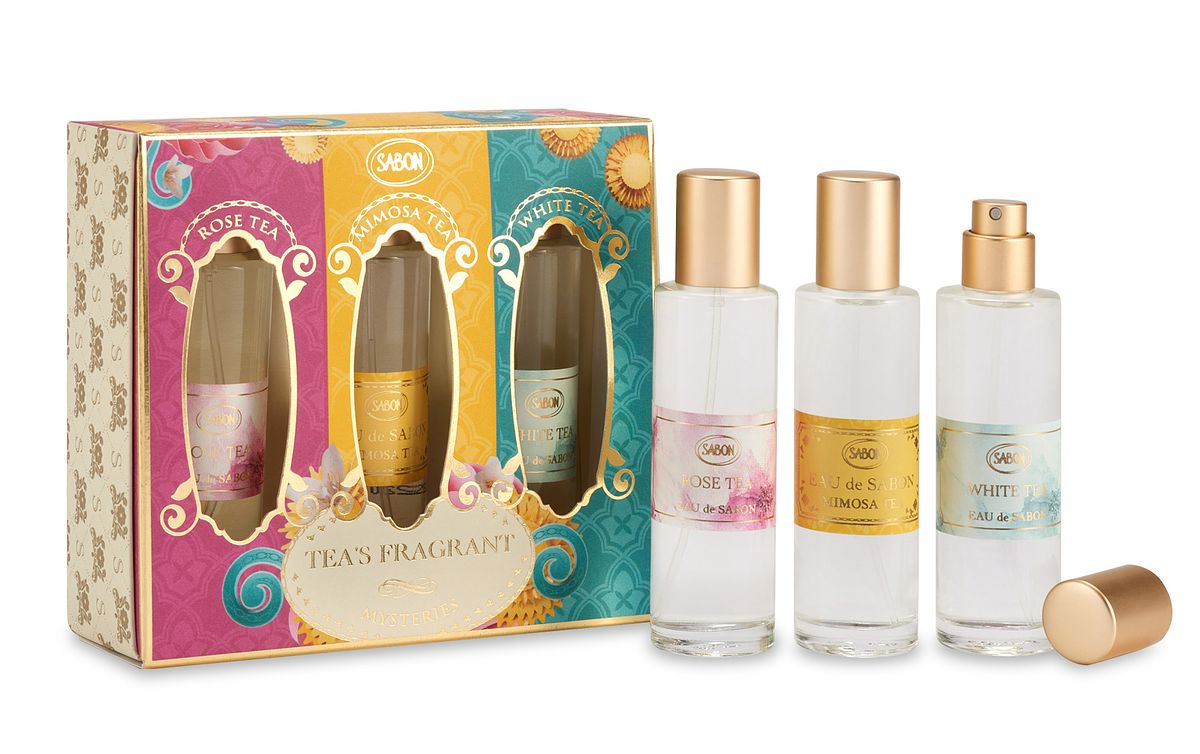 茶語時光香水禮盒典藏SABON三款30ml茶系香水,明亮愉悅的限量茗金合歡、寧靜迷人的白茶香味、優雅浪漫的玫瑰茶語。可依照心情與場合自在選用適合的香氛,小巧容量亦方便攜帶。