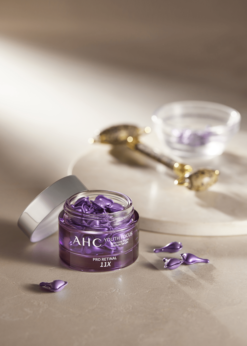 以高效保養成分提供消費者醫美療程外的超CP值居家抗老的AHC,2023年初重磅新品,「超能A醛賦活晚安逆時膠囊」#抗老小紫彈,帶來嶄新青春氣息,高效撫平細紋、緊緻毛孔、一夜修復肌膚,讓肌膚一夜煥活、化解老化危肌,歲月無痕中享受新年新氣象!