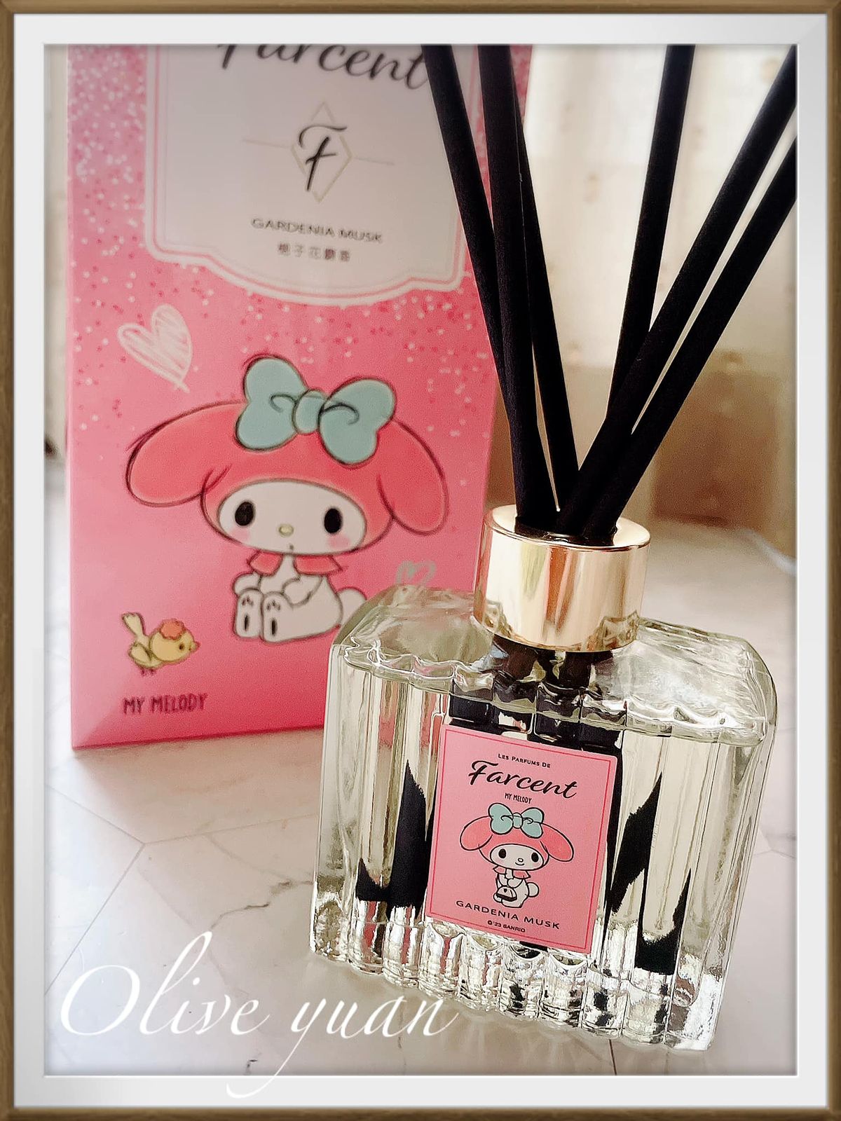 My Melody包裝的「Farcent香水室內擴香」是梔子花麝香,雖然圖案很可愛但瓶器很高雅,國際調香師調製的香氛,成分除了有通過IFRA國際認證,還有添加日本植物消臭因子,及專利舒緩成分,使用起來更安心。