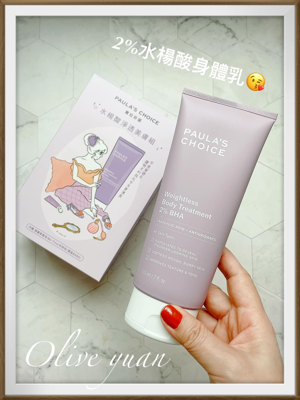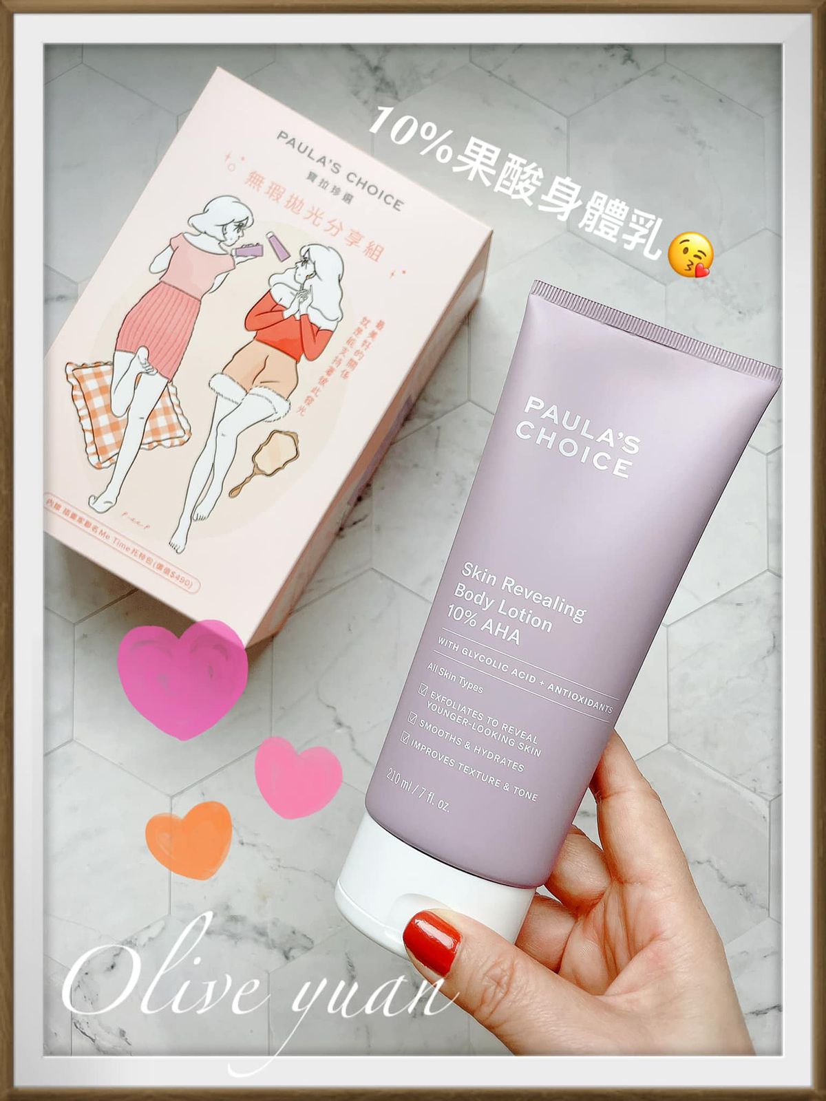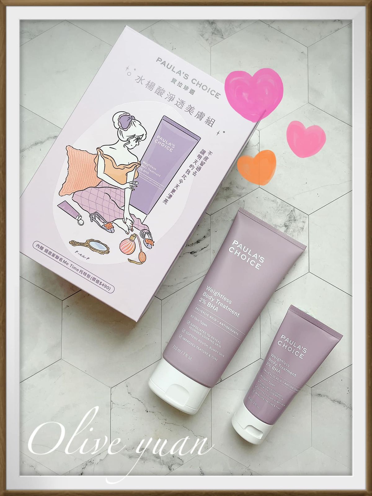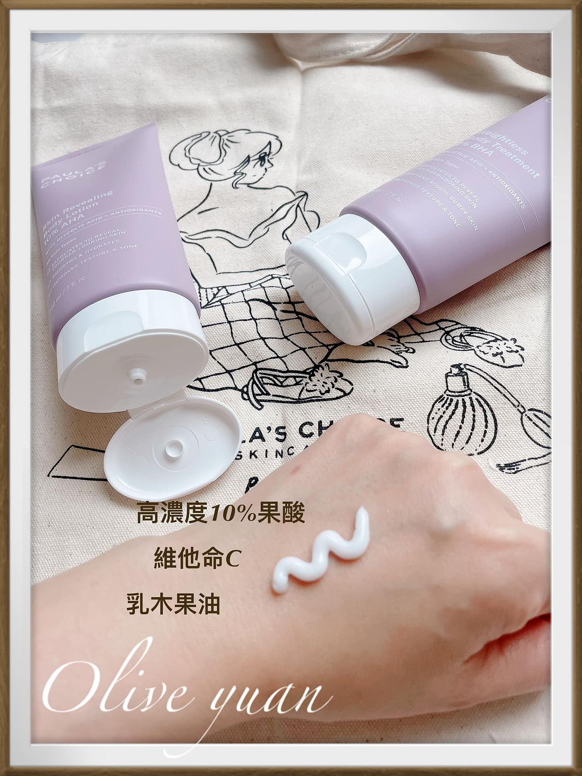 「無瑕拋光分享組(特價NT1,880)內容物為:2%水楊酸身體乳+10%果酸身體乳+Me Time托特包,說真的~連我都無法認真時時幫身體去角質,但又無法忍受粗糙部位的產生,所以在意手肘、膝蓋等關節處黯沉、想改善老廢角質造成的肌膚困擾、想每天溫和調理角質的人就帶這組!