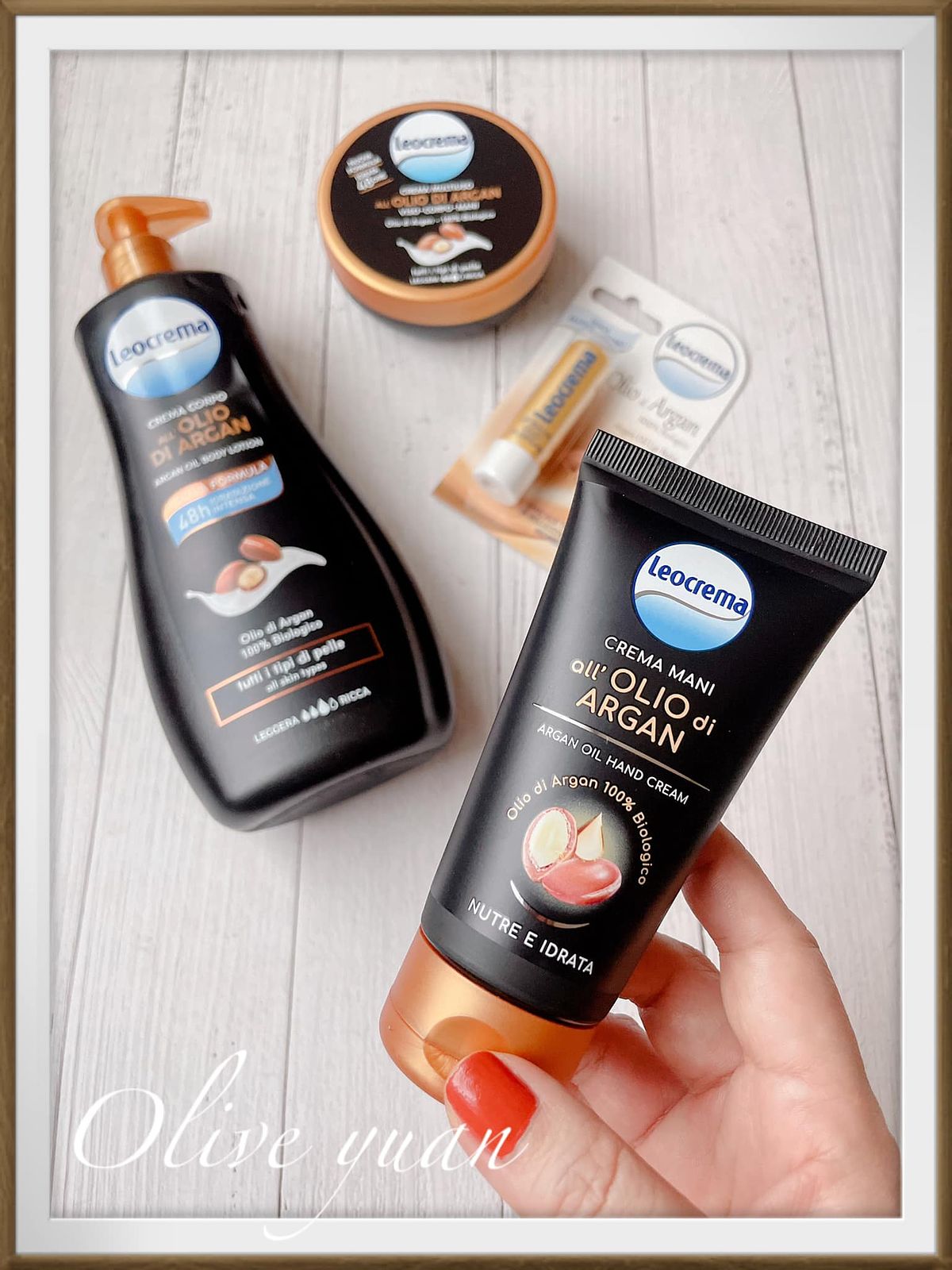 但「Leocrema蕾歐瑪」可不一樣,從護唇膏、護手霜到身體乳都會帶給你那種“越用~肌膚防護力越好”的感受,果然是熱銷義大利70年的國民護膚品牌,光看全黑包裝就知道它很威,而且成分以天然摩洛哥堅果油精華為主!