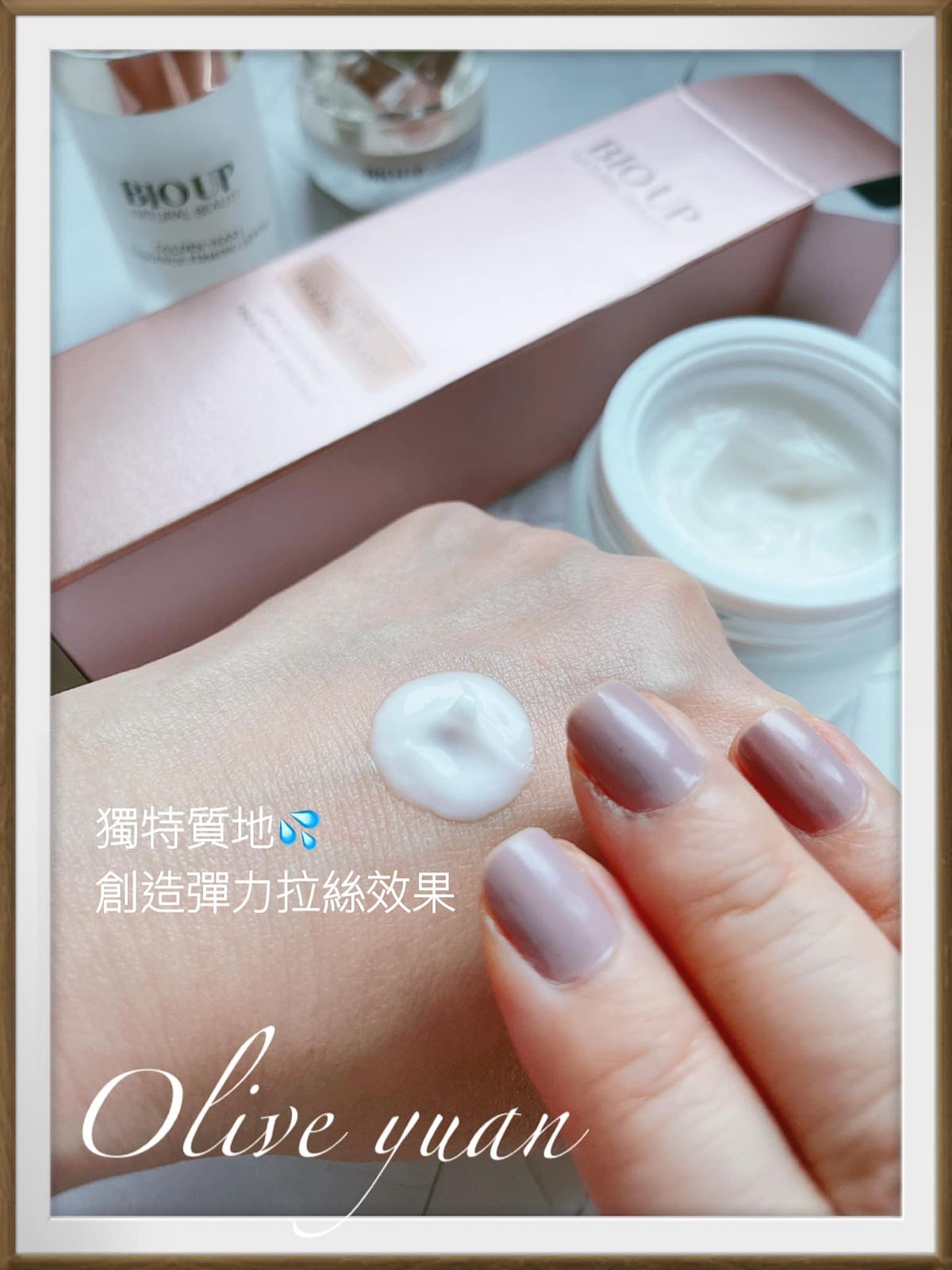 「高純度酒粕胎盤彈潤霜(50g NT3,680)」的質地是我很喜歡的那種「牽絲」質地,像納豆那樣,所以還被暱稱為「極線霜」,主要是因為裡面有非常營養的「日紐雙胎盤原液」,以創新凍結酵素抽出法所萃取出的8%珍貴精華,富含21種氨基酸、黏多糖醣類等,能強化防禦緊緻彈潤,還有融合四種胜肽(玻尿酸胜肽、緊緻二胜肽、撫紋類肉毒胜肽、活膚米胜肽)的「4D胜肽微絲」。
