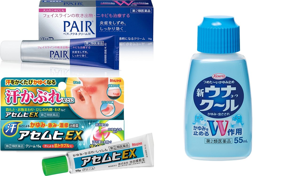PAIR® ACNE祛痘膏是萬年不敗的必回購補貨藥妝,許多使用過的人都大讚對於痘痘超有效!另外池田模範堂汗疹軟膏則非常適合炎熱夏季、容易爆汗的人,而KOWA蚊蟲止癢液則是人人推薦的防蚊必備聖品,擦起來清涼舒適能輕鬆止癢,使用起來也方便好塗抹,對付台灣多蚊子的環境真的太需要!