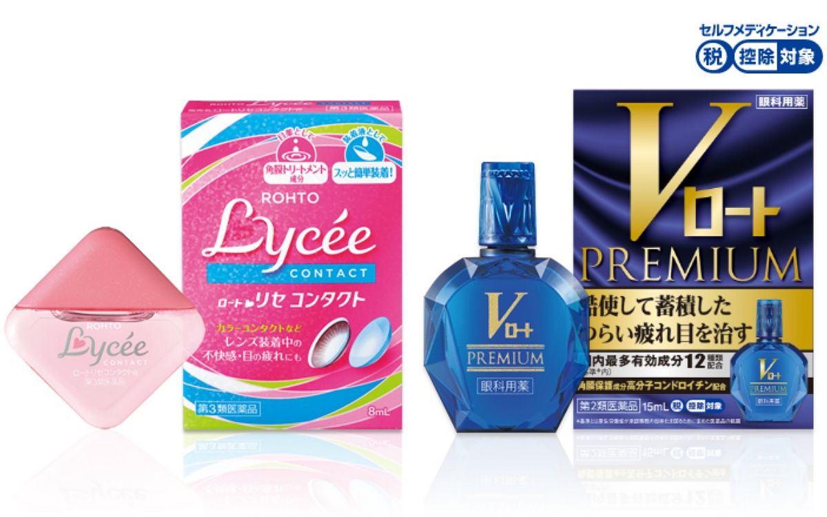 每到日本藥妝店都得補貨的眼藥水,最推薦樂敦這兩款給大家,Lycee眼藥水俗稱小花眼藥水,這款就算配戴隱形眼鏡也可以點,特別適合喜歡帶放大片、變色片的女孩,另外最新推出的V頂級藍鑽眼藥水號稱最強全能型眼藥水,官方表示內含了12種有效成分,對於日常眼部的疲勞都非常有效喔!