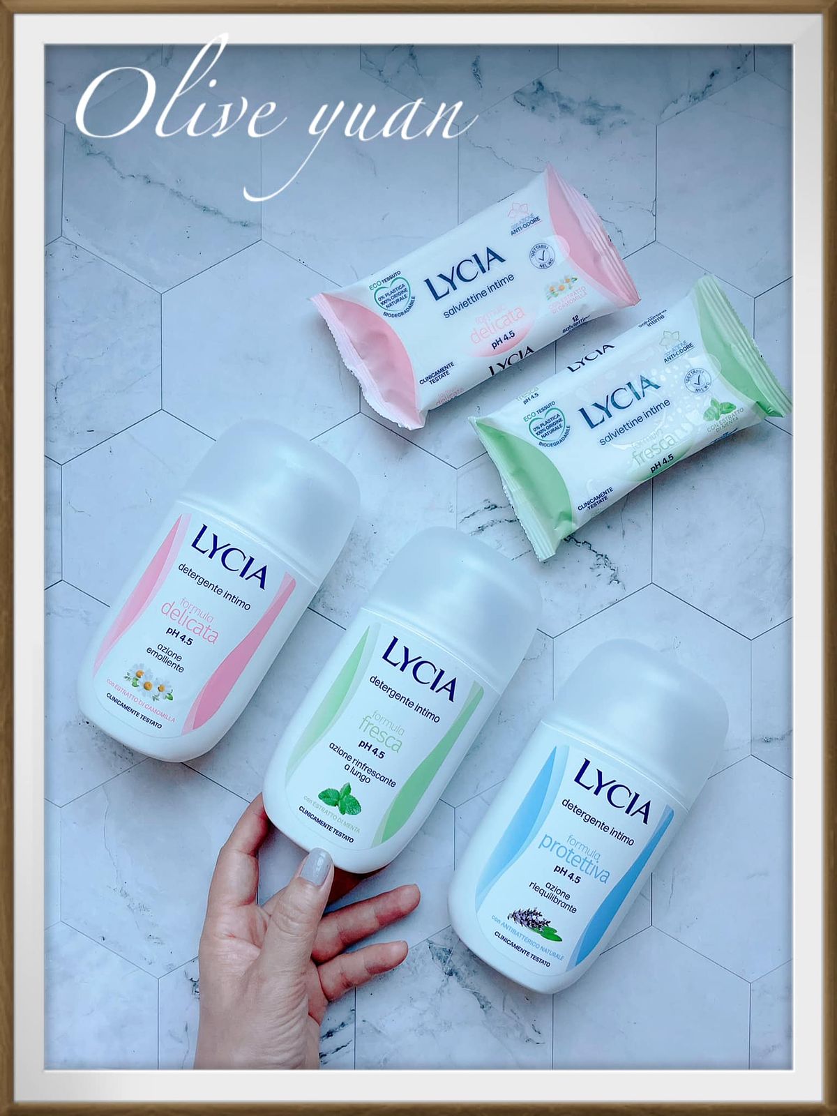 來分享一個好可愛的私密部位保養品牌。成立於1971年「Lycia莉舒雅」,在義大利已超過50年,在西班牙、葡萄牙等歐洲地區也有極高市佔率。個人覺得它的包裝及色系溫柔又優雅,而品牌最大特點就是~不論清潔或擦拭,均能維持私密部位健康良好的pH4.5環境。
