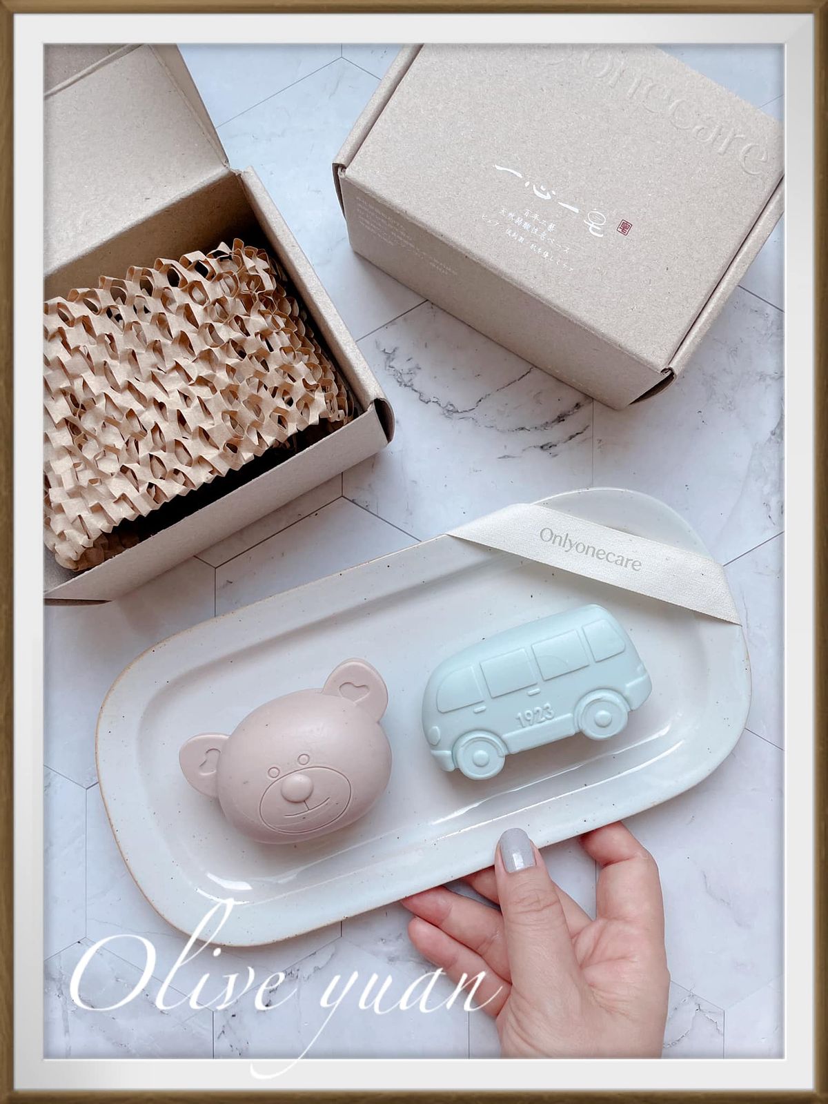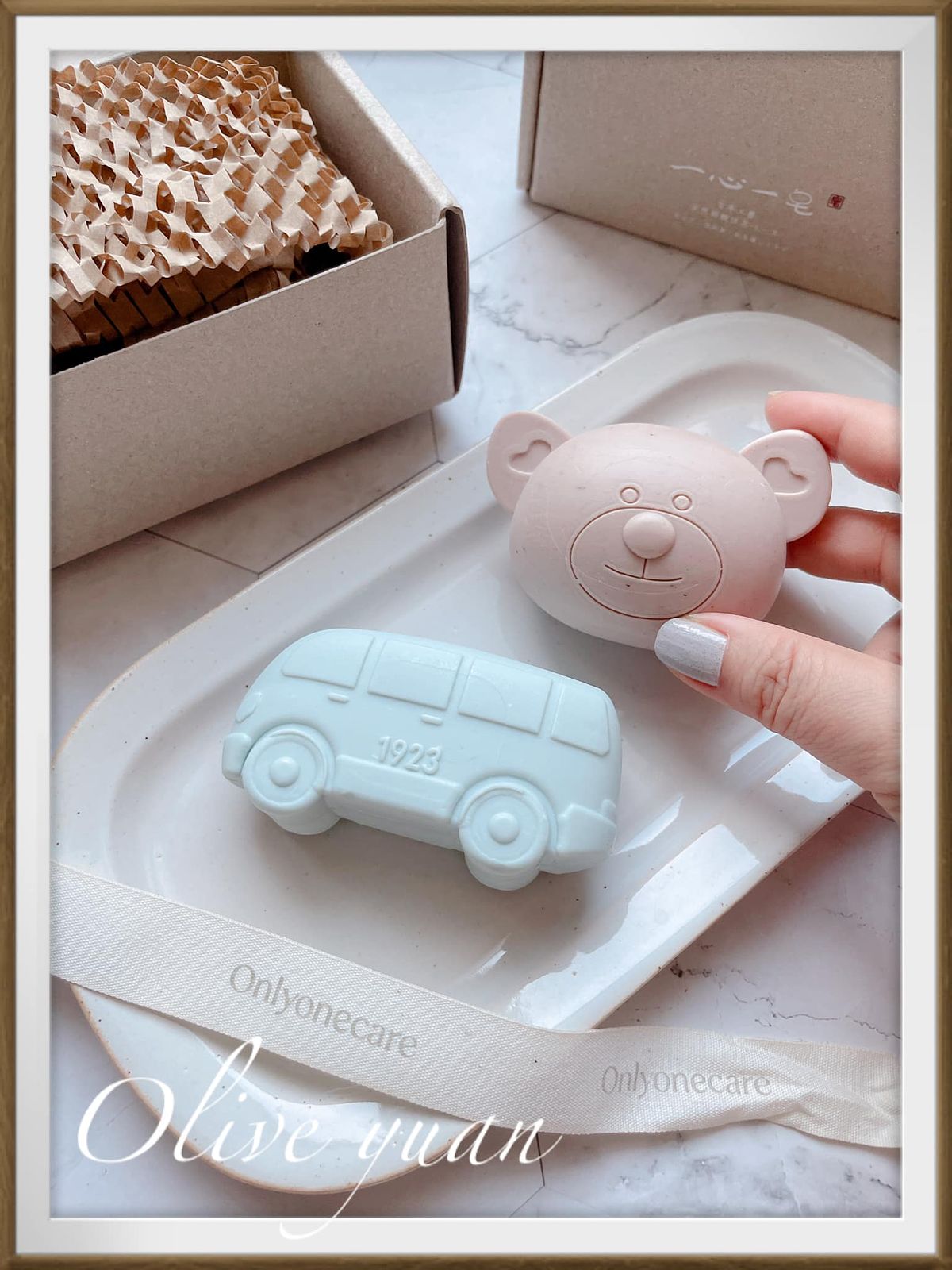 而且它們可愛得要命啦!這我“暫時”真的洗不下去!而且紙包裝還沒打開就聞到舒服的香氛撲鼻!打開包裝更是被可愛造型嚇一跳!而且不止車車跟熊熊,還有不同顏色的可愛星星,都有禮盒包裝喔!