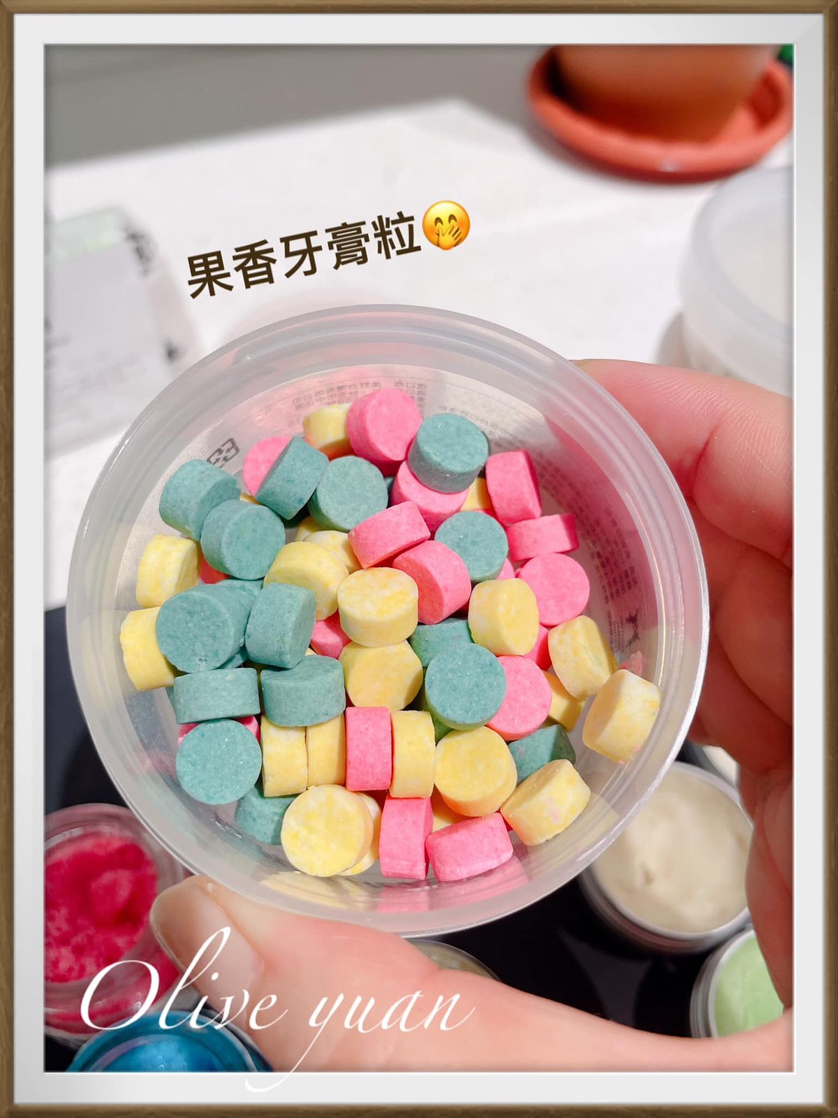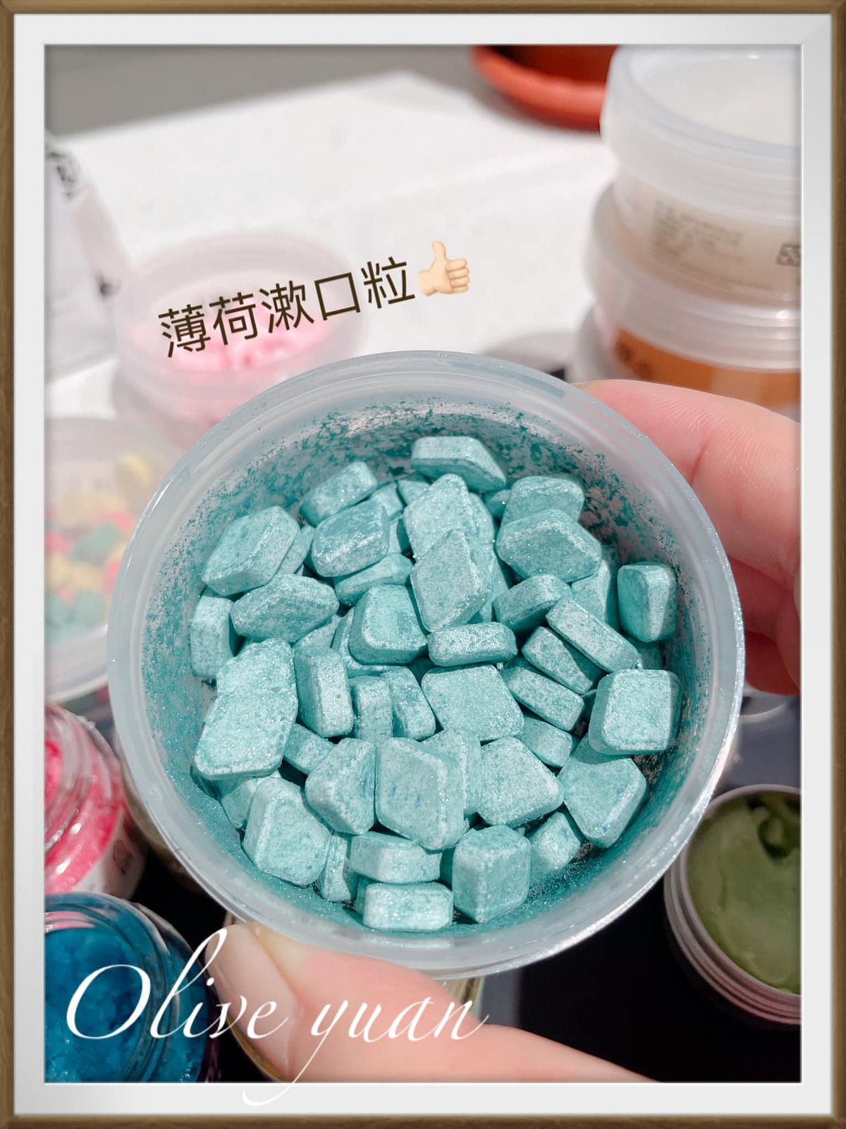 我們來到口腔護理產品區。我跟她說~其實以前有用過牙膏粒但不太習慣,可她要分享的是「漱口粒」!然後要我拿一顆放進嘴裡咬一咬,吞2口水後開始漱口,嘴裡薄荷清香立刻湧出!立刻叫好友過來也咬一顆試試!