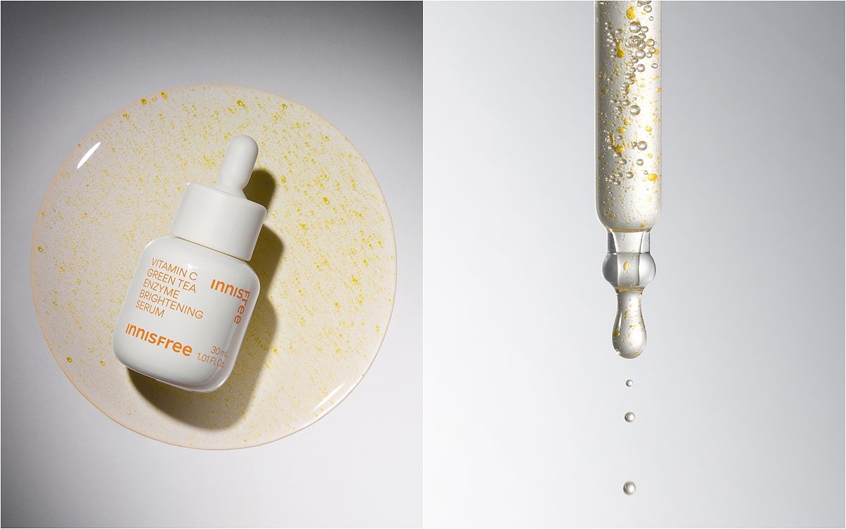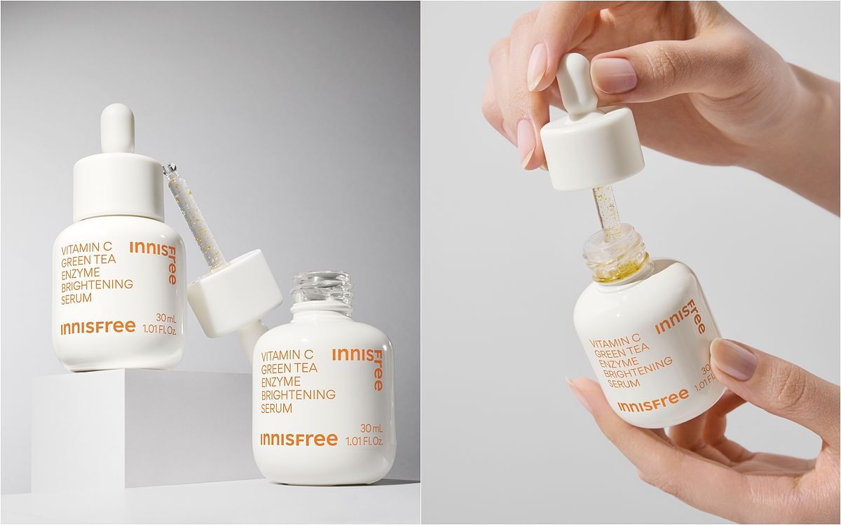 INNISFREE以全新品牌概念亮相後,首發大勢新品「維他命C淨亮精華」(#亮亮瓶),主打超有感的肌膚瑕疵改善與亮白升級!除了煥然一新的產品包裝風格,成分更添加獨創亮白科技「金球膠囊」與新一代角質護理成分「綠茶酵素」雙效配方,可溫和溶解於肌膚表層、傳遞維他命C亮白功效直達肌底,使用4週即可擁有玻璃珠般的光透肌!