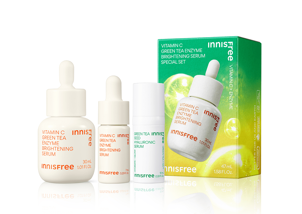綠色創新科技 — 綠茶酵素:由 INNISFREE 專利研發、全新世代的角質護理成分「綠茶酵素」,可溫和代謝老廢角質、達到亮白功效。