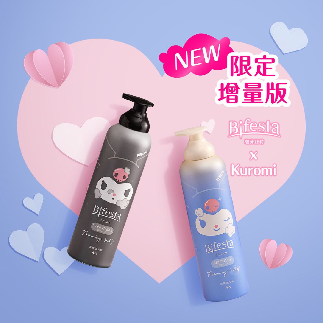 每年夏天不斷逼出歷年最高溫,踏出門口直接爆汗又出油!今夏Bifesta碧菲絲特與三麗鷗人氣成員「酷洛米」推出限量聯名啦!兩款增量不加價的碳酸泡洗顏,有添加乳酸成分能讓肌膚透亮的抗暗沉碳酸泡洗顏,以及最新添加泥炭配方能深層清潔的極淨碳酸泡洗顏,即使在炎炎夏日,肌膚依然透亮不黏膩。今年夏天就用最Q~的酷洛米和最Q~彈的碳酸泡洗顏讓肌膚也放個療癒的暑假吧!