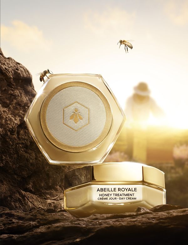 「皇家蜂王乳蜂蜜修護白霜」高性能配方的核心是傳奇的烏埃尚島蜂蜜。在這個坐落於Iroise海的島嶼上,嬌蘭發現了一種品質卓越的蜂蜜,富含珍貴的多酚和氨基酸。這個自然環境是聯合國教科文組織明定的受保護生態系統,也是黑蜂的保護聖殿,牠們便是在此生產出神奇的年輕妙方。只有少數蜜蜂生產的蜂蜜可以維持皮膚彈性和緊緻度¹,黑蜂就是其中之一。這款靈感來自於蜂蜜繃帶的日霜,因配方中活性成分滲透肌底並擴散如密封在肌膚核心,其網狀效果質地為肌膚提供極致舒適感以及彷彿繃帶般之包覆感與保護感,有助於打造年輕保護網。