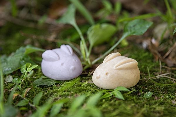 討喜可愛的月兔皂再次登場,左為紫草洛神皂,右為綠豆薏仁皂。