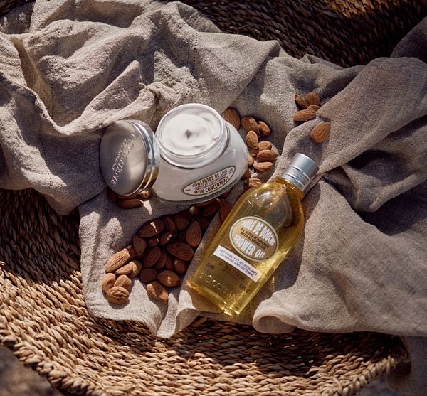 杏仁生長於美麗平滑的綠色外殼中,果實能使肌膚柔嫩平滑,緊緻動人。L’OCCITANE歐舒丹選用普羅旺斯孕育的杏仁,將所有質地的杏仁有效完整的運用,從杏仁殼、杏仁核及以冷榨方式提煉出杏仁奶、杏仁油,打造完美奢華的美體產品系列,同時支持當地杏樹永續發展計畫,讓杏仁樹能夠永久留存。