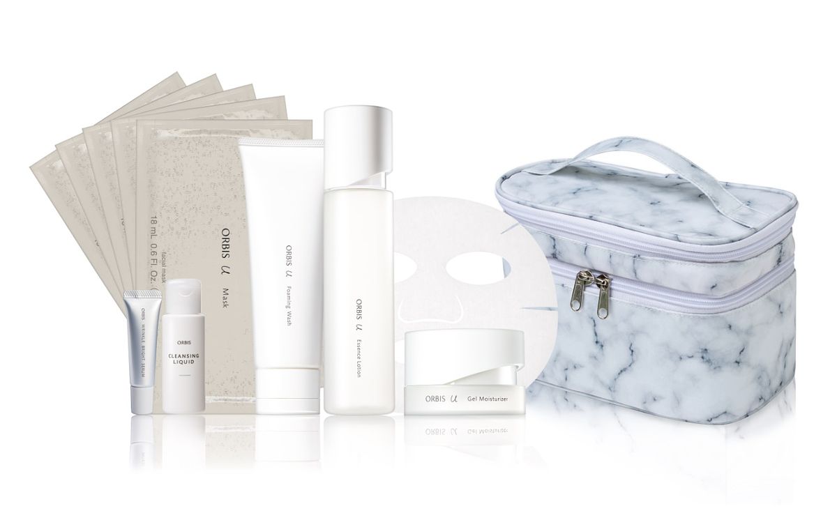 加贈 ❶芯生悠賦活化妝水面膜5片、❷澄淨卸妝露迷你瓶24ml、❸第二代全能盈白精華霜7g、❹ ORBIS雲霧雙層化妝包