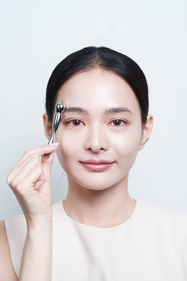 享受居家極致奢華護膚保養,於夜間清潔後,搭配2-3滴『Bio-3激活安瓶精華』,按摩全臉至吸收,再接續進行眼周保養,將『Bio-3激活眼部安瓶精華』塗抹於眼周,包含眼下、眼瞼、眼尾和眉毛之間,使用無名指將精華輕輕拍開再利用超導眼部按摩滾輪按摩。超導眼部按摩滾輪採用鋅合金材質,前方滾珠可360°全方位滾動設計,能完美貼合眼周輪廓,零死角按摩眼周肌膚、穴道,幫助成分吸收同時冰鎮舒緩,從內眼角向外到以Z字型輕輕滾動於眼周,一眼來回3次,緊緻更有感。