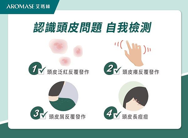 頭皮健康與是否正確清潔護理有關,想維持頭皮的健康狀態,有賴於長期耐心照顧與日常護理,草本頭皮養護專家AROMASE艾瑪絲表示:「頭皮危肌的發生,多半源自居家頭皮護理習慣方式,加上日常作息及飲食不當,使得頭皮健康亮紅燈,進而出現頭皮搔癢、紅腫、頭皮屑等頭皮問題,嚴重時可能導致反覆發生頭皮不適,想擺脫頭皮問題拖泥帶水,養成良好頭皮保養習慣相當重要。」