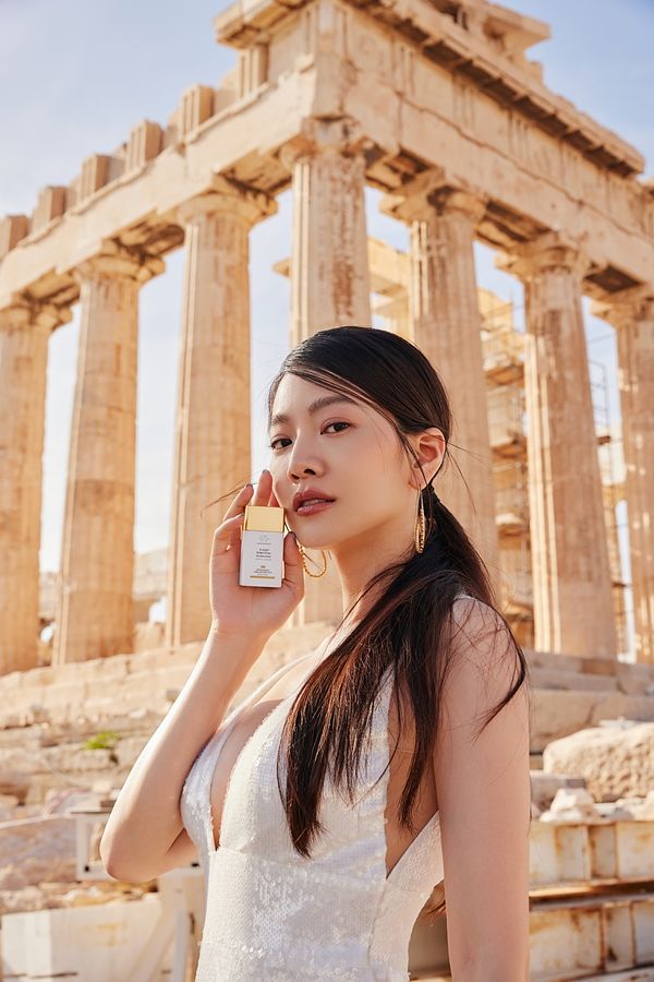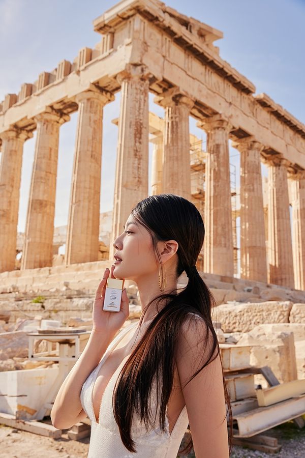 曾之喬帶著新品 #小金露「菸鹼醯胺發光露」,在希臘帕德嫩神殿前直接化身成散發金光的雅典女神,拍出一張張絕美大片!美照一釋出,耀眼光芒也穿透螢幕,網民皆驚呼並讚嘆女神魅力,更吸引多名藝人前來貼文朝聖!