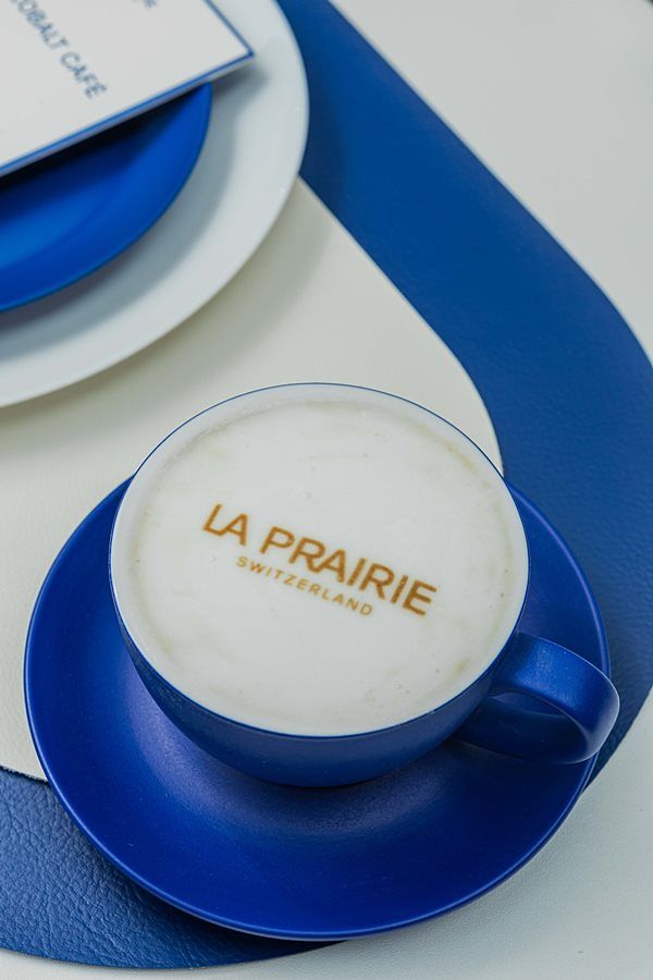 在進行一場藝術洗禮後,來到全台首家瑞士鈷藍咖啡館,以大膽無畏鈷藍精神,佐以咖啡藝術饗宴,沉浸BELLAVITA中庭灑下的一抹暖陽,品味La Prairie萊珀妮獨一無二的鈷藍拉花咖啡,享受寧靜優雅時刻。除了La Prairie萊珀妮經典LOGO外,特別將La Prairie萊珀妮抗老調養中心的家徽以及傳奇乳霜瓶身融入拉花設計中,回溯品牌最初始的視覺表現,呼應La Prairie萊珀妮從創始到現在的經典傳承,同時向魚子美顏乳霜問世25週年致敬。