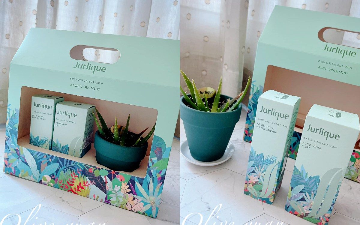 植萃保養專家─「Jurlique茱莉蔻」鐵粉們每年都在等這個,就是限量活膚露及護手霜,這次的公關禮還搭配了一盆可愛蘆薈,所以這次是擁有「庫拉索蘆薈」核心成分的沐光森林限量版,粉粉的綠好療癒。