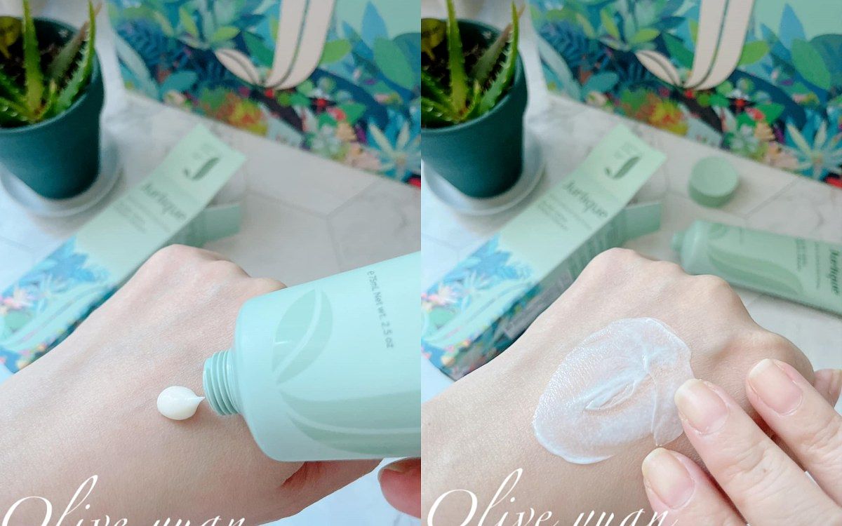 質地很潤很保濕,很適合這個季節使用,保養成分添加了「庫拉索蘆薈葉汁、白夏菊萃取液、黃金海藻萃取」,所以除了保濕還能舒緩及延緩老化,除了這款防曬,系列中還有清透無潤色款、紫色款及綠色款喔!
