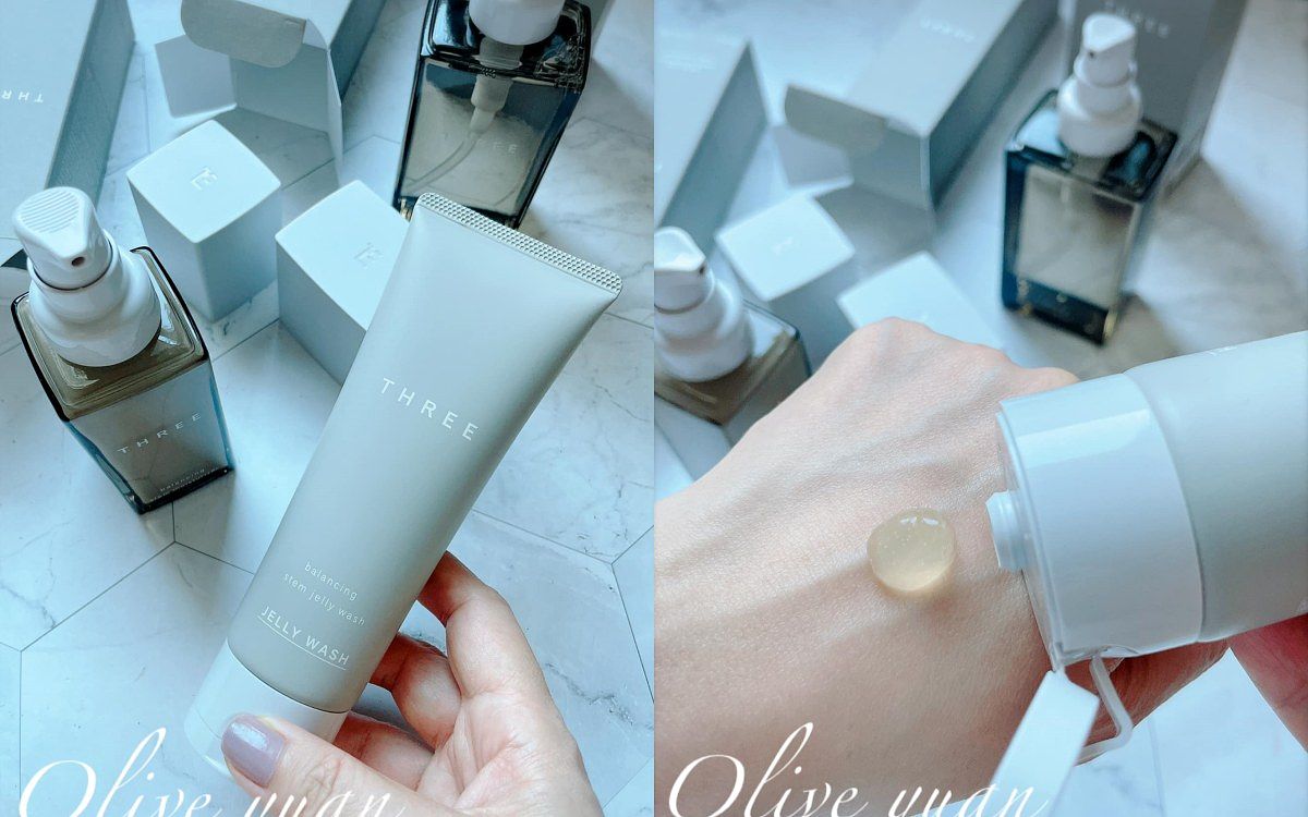 「平衡基萃洗顏凝膠(100g NT1,450)」很特別,不會起泡,是THREE獨創以複方精油及植物純露凝固寒天成分為基底的產品,還有植物性細緻去角質顆粒,能調理粗大毛孔及去除老廢角質,系列共通成分為「沼澤茶樹精油」及「番紅花」、「牛蒡」萃取精華。這款好好用,綠色草本香氣很THREE。