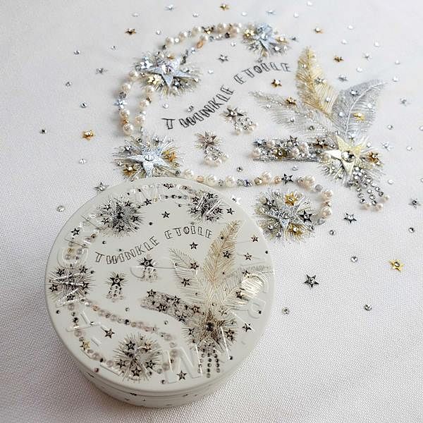這是一款極適合用來送禮的設計,為不同年齡的收禮者帶來星星一樣閃耀的光澤!其中外盒上的銀線有兩種顏色:粗金屬線和實心細線,金線也有兩種顏色。珍珠則宛如施華洛世奇,加上半金屬捷克珠的精緻優雅光澤,傳遞前所未有的閃耀心意。