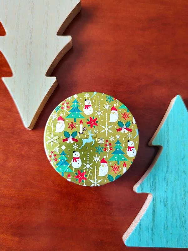 圓蓋上印製了雪景的圖案,重現下雪天的日子裡,讓史努比和糊塗塌客這對最佳好友,傳遞送禮與收禮者暖暖友誼與溫暖心意。