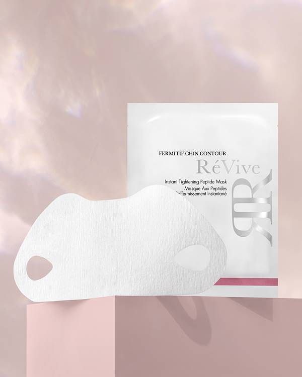 隨著年齡增長,下半臉的骨骼變小會導致地基坍塌,造成脂肪下滑變成惱人的嘴邊肉、雙下巴;皮膚老化鬆弛造成頸紋、木偶紋、法令紋產生,RéVive全新『緊緻胜肽V臉膜』以物理與奢華成分雙重緊塑,對抗地心引力,向上提拉下顎及頸部線條,緊緻立體輪廓。添加品牌獨創「複合新生胜肽」及「複合緊緻胜肽」活化基底膜縮緊肌膚,宛如居家音波般雕塑下半臉輪廓線,瞬間有感緊提更年輕;成分含有「納豆精萃」與「菖蒲精萃」共效作用,幫助肌膚緊緻同時柔嫩肌膚,改善膚質紋理,提升肌膚代謝與修護力,達到長效鎖水保濕。