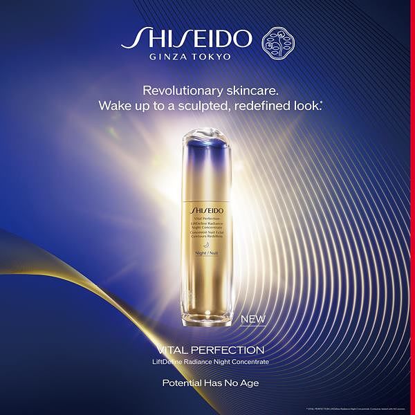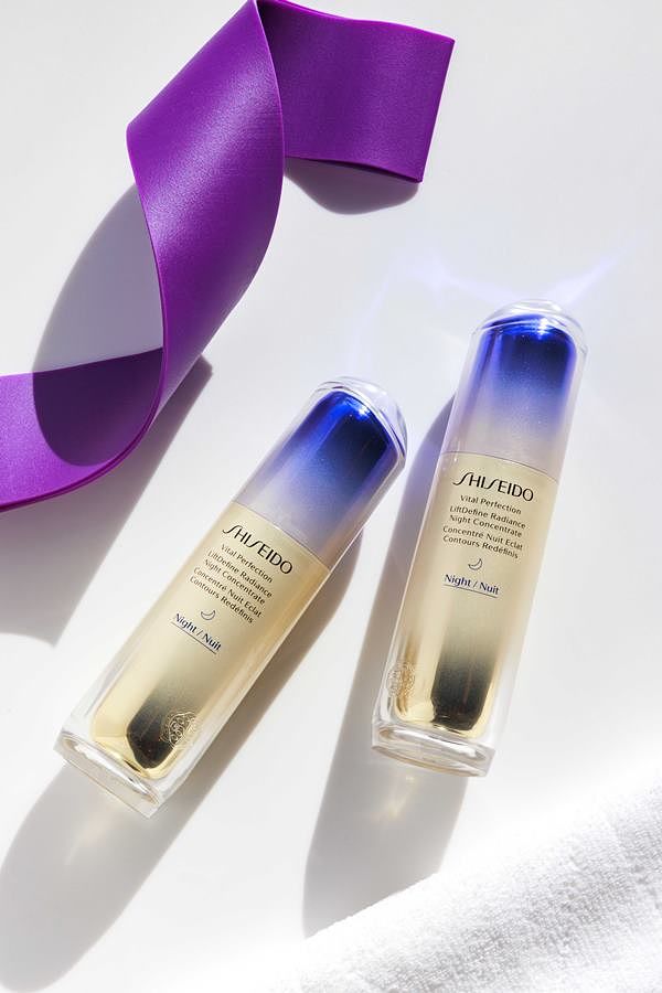 資生堂「彈力帶緊緻 V 臉夜間精華」便注入了200朵「東方緋紅花」才能提煉1克的「珍稀緋紅花緊緻活萃TM」,為肌底的隱形能量網注入強大生命力,與肌膚自然的修護生長功能協同作用,一覺醒來,肌膚更加平滑、緊緻、無痕。