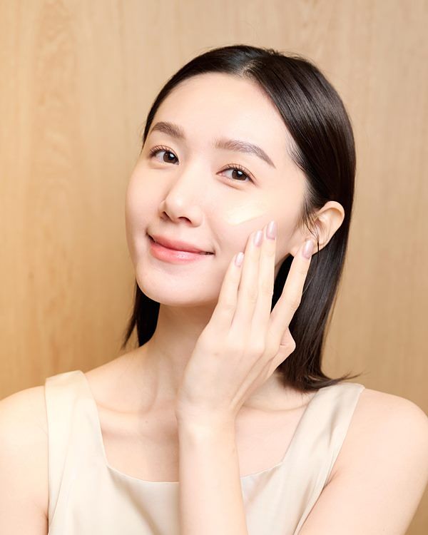 ① 3抹煥膚:按壓3下,先兩頰再額頭,輕輕塗抹全臉