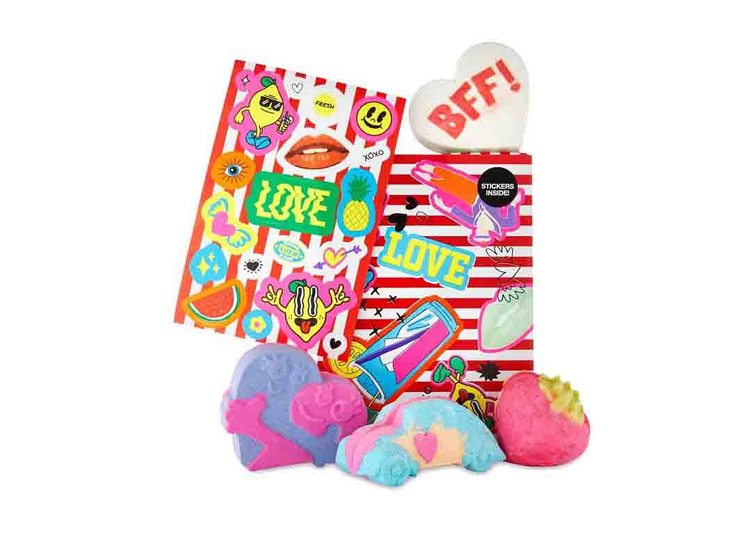 想送禮給喜歡泡澡的好友嗎?送給喜歡甜蜜香氣的好友嗎?還是想送禮給你認為適合嘗試今年 LUSH 情人節限定系列產品的好友?那這款禮盒可說是你的理想之選!期間限定的禮盒內含四款果香與花香的浸浴良伴,並附有趣味十足的主題貼紙,讓你為喜愛的物品加上獨一無二的裝飾。