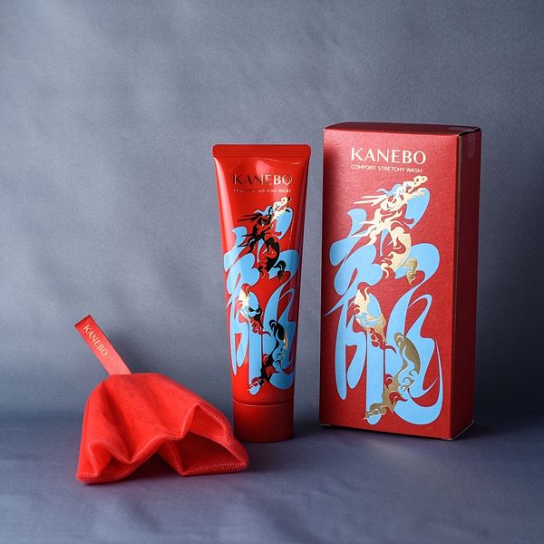 2024甲辰年以金龍形象搭配藍色龍字躍上瓶身,整體包裝充滿律動感,增添活潑精神,靈感源於2024年生肖「龍」,將「龍」的插圖與漢字結合,表現水中游龍、龍騰躍動印象,呈現與春節相得益彰的吉祥寓意,呼應新的一年龍騰虎躍新氣象。「#KANEBO保濕緻潤洗顏皂霜 金龍鴻運限定包裝」維持牽絲般質地的濃潤吸附泡沫,並訴求清潔過程無摩擦力、無壓力,因添加豐富的複合保濕成分,從洗臉開始到結束,宛如被水潤包覆的美容液洗顔品。今年首次加入朱紅色起泡網組合,維持一樣價格。