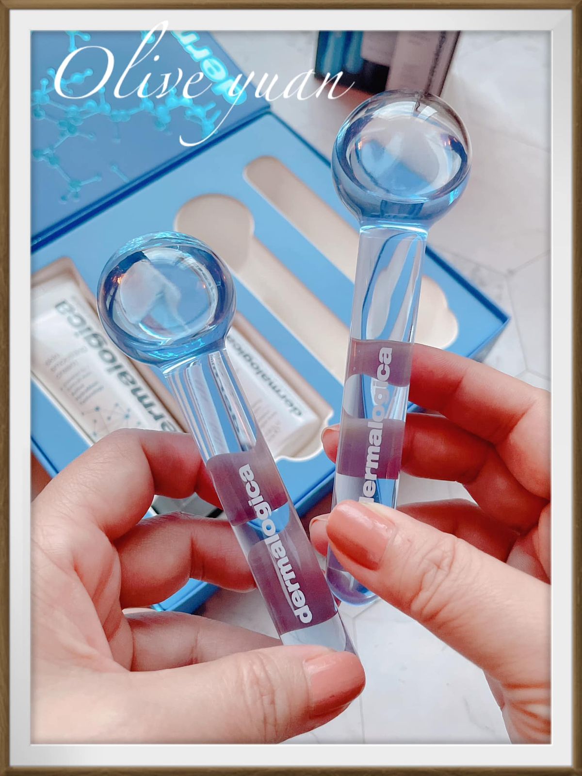 也因為膚質的改變,「dermalogica德卡」特別幫我準備這款「48HR長效水潤禮盒(NT5,170)」,但特別吸睛的是兩支好像跳墨西哥舞用的小道具,它是玻璃材質的「美顏冰導棒」,好冰好涼,可以搭配保養一起使用!