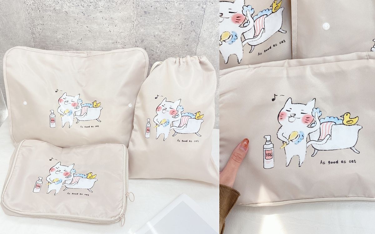 此次品牌特別企劃聯名活動,想要傳達給女孩們猶如貓咪舒適恣意的生活,訂製旅行盥洗包、飲料、肩背帆布包等日常居旅好物,全部印上超可愛的阿格里貓圖案,軟萌表情絕對讓妳想全部收集一波!讓私密乖如貓、自信又優雅,想收編的姊妹快下單呀~