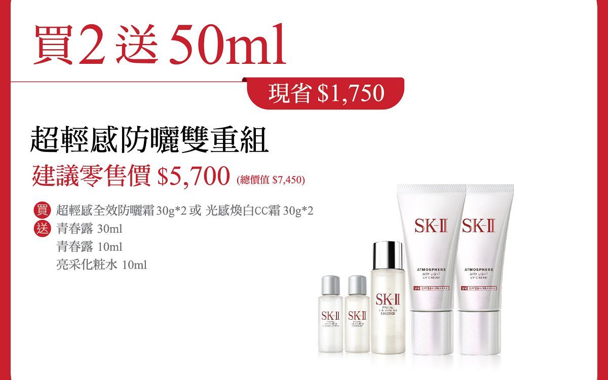 圖片來源:SK-IISK-II超輕感-防曬雙重組 建議零售價$5,700