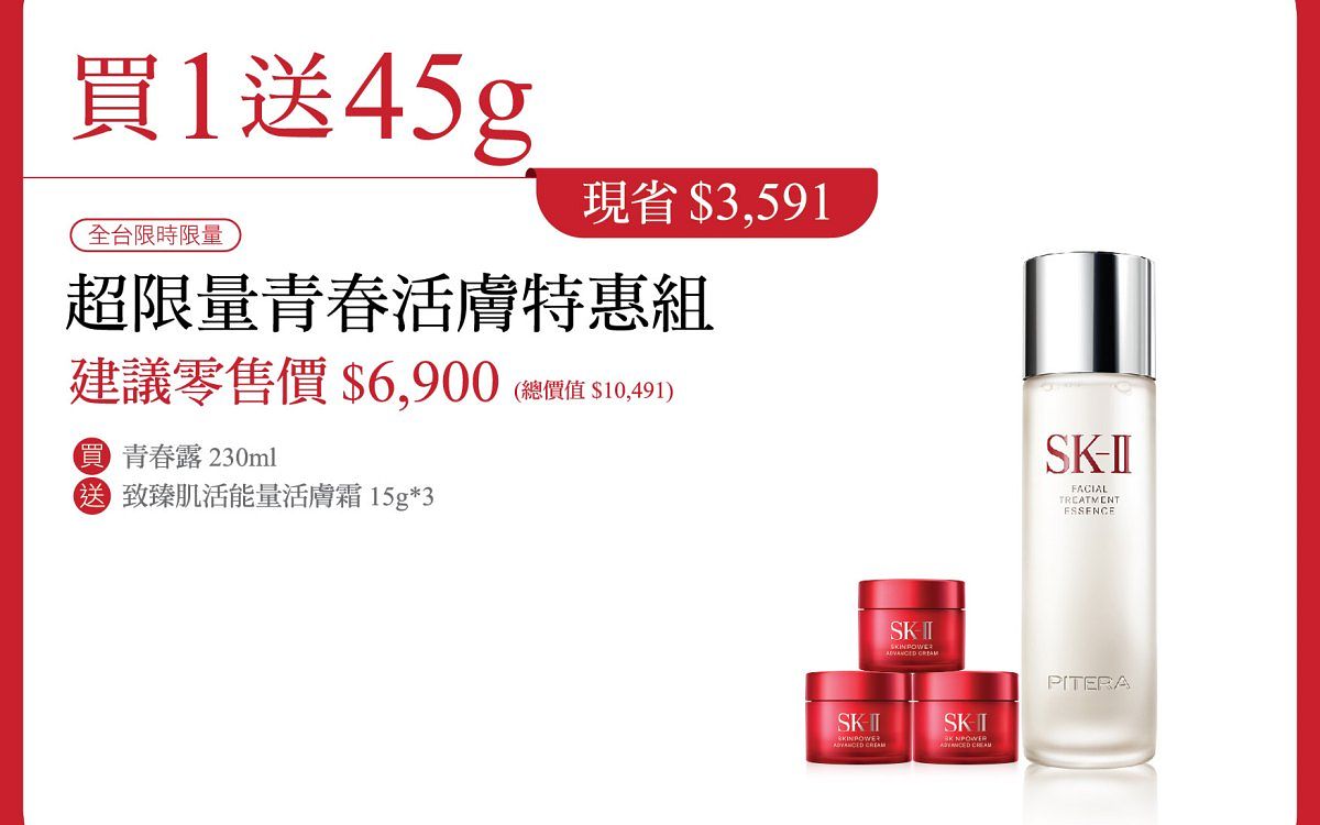 圖片來源:SK-IISK-II超限量-青春活膚特惠組 建議零售價$6,900