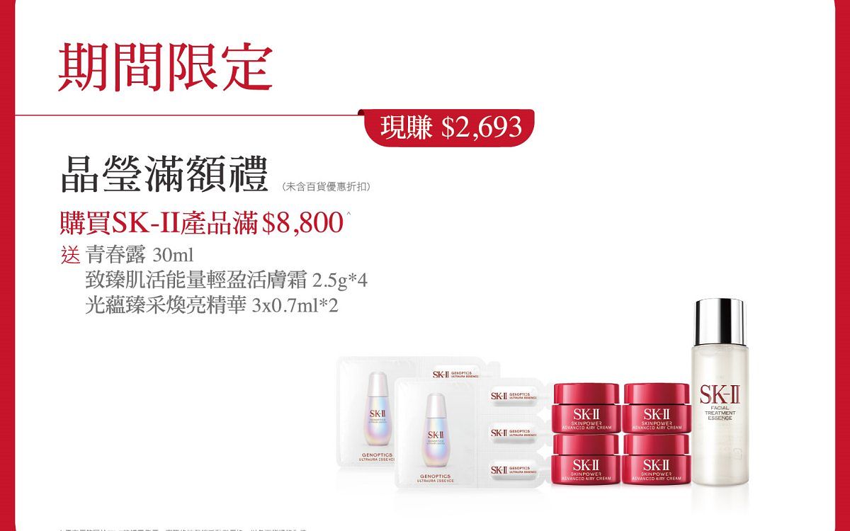 圖片來源:SK-IISK-II 期間限定晶瑩滿額禮 購買滿$8,800 *不含特惠禮盒*