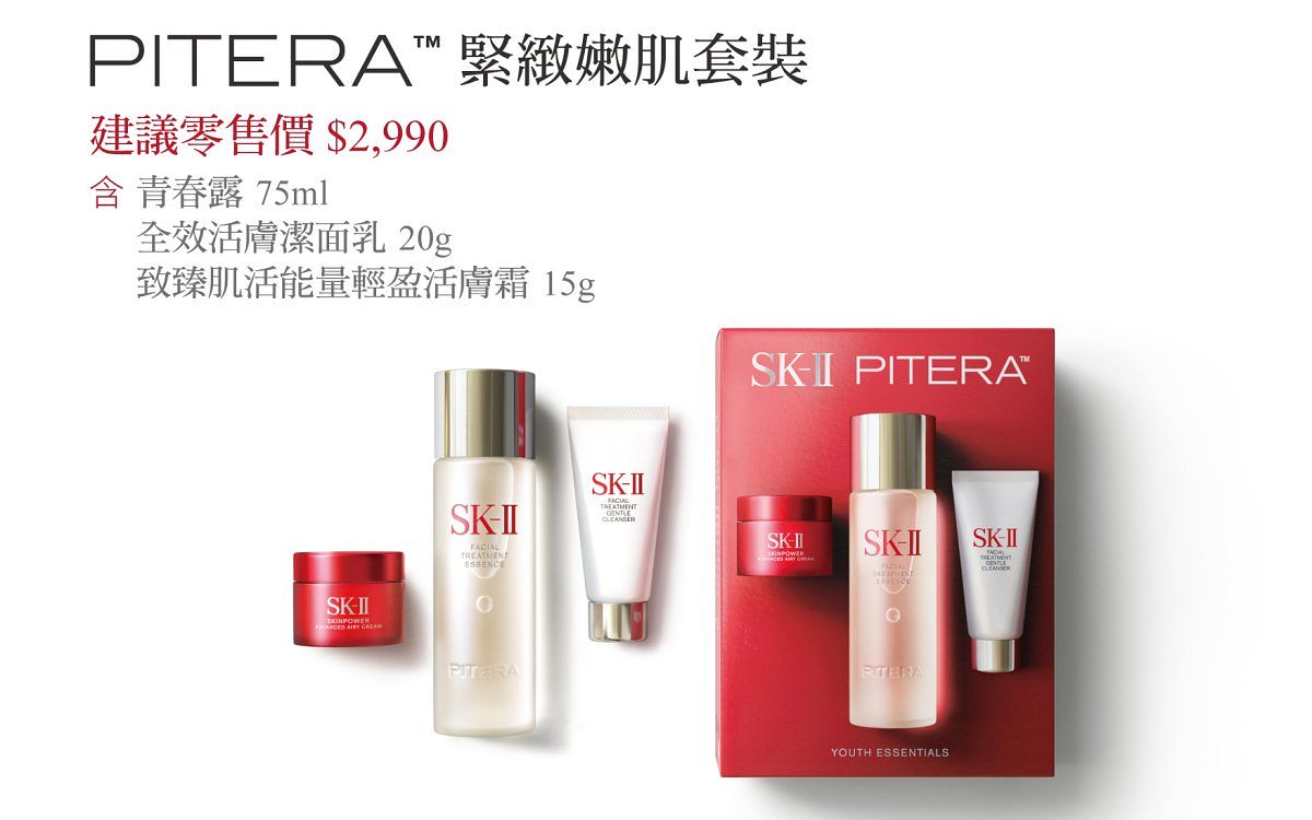 圖片來源:SK-IISK-II PITERA™-緊緻嫩肌套裝 建議零售價$2,900