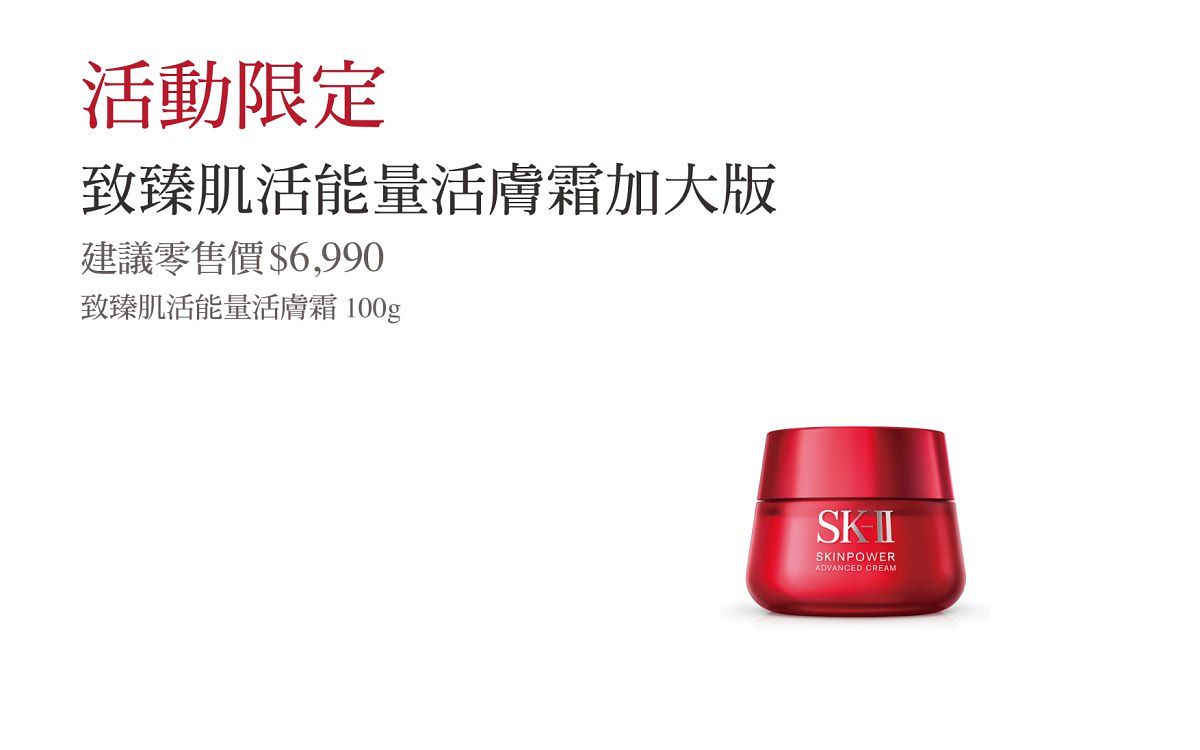 贈品: SK-II 致臻肌活能量活膚霜 15g*2
