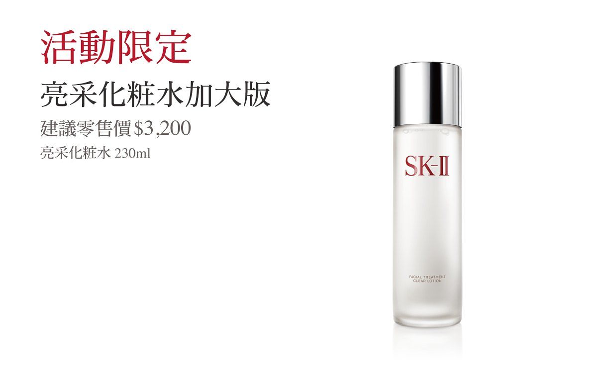 贈品: SK-II 青春露 30ml + SK-II 青春露 10ml + SK-II 亮采化粧水 30ml