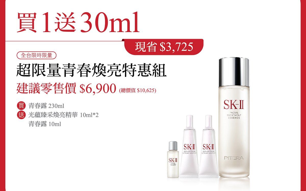 圖片來源:SK-IISK-II煥亮青春特惠組 建議零售價 $7,290