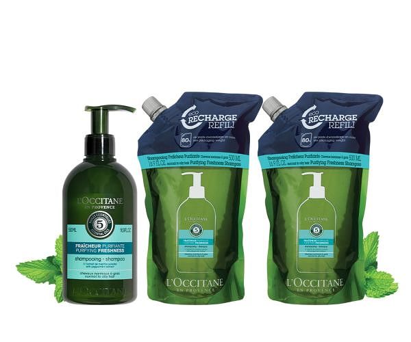 圖片來源:L’OCCITANE 頭皮常常有悶味、不到下午就出油,快讓油頭剋星「草本淨涼洗髮乳」來救援!純淨普羅旺斯歐薄荷精華油、天然草本醋及維他命B5所結合的淨化力,加上無矽靈的獨家草本淨涼配方,洗得乾乾淨淨、清清爽爽卻毫不乾澀,一洗沁涼超過癮!頭皮自在深呼吸!悶熱油頭徹底斷開!買500ml瓶裝貼心配好1000ml環保補充包,省荷包又能減少垃圾愛地球!